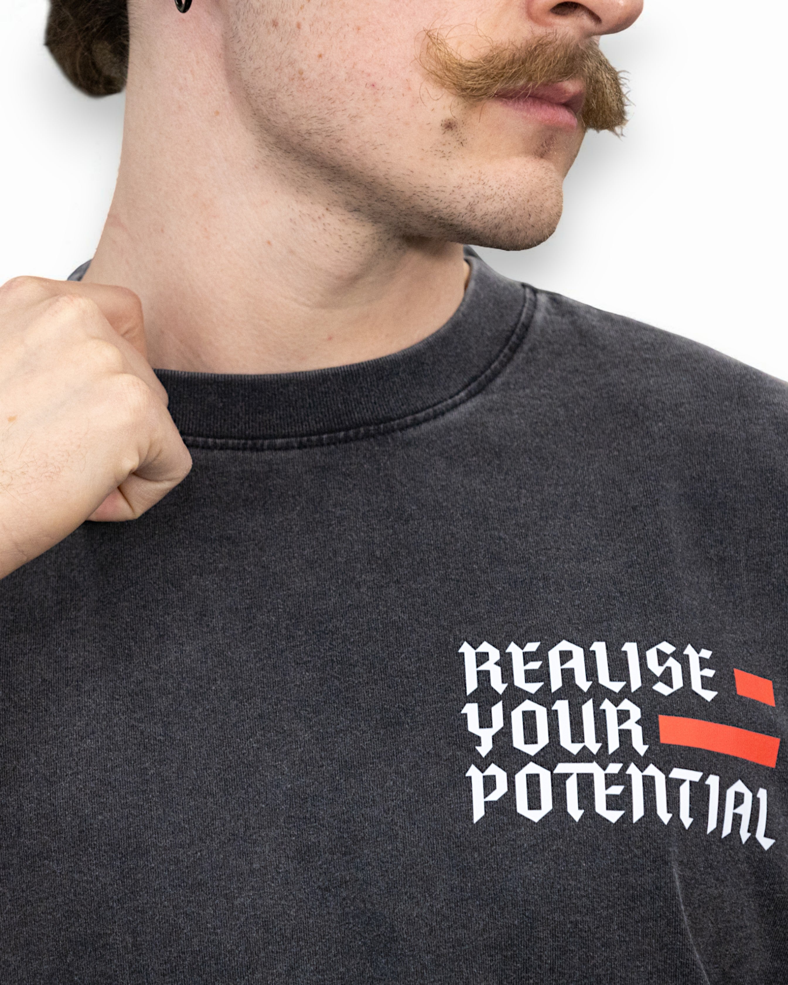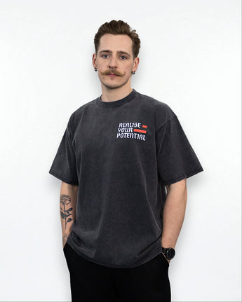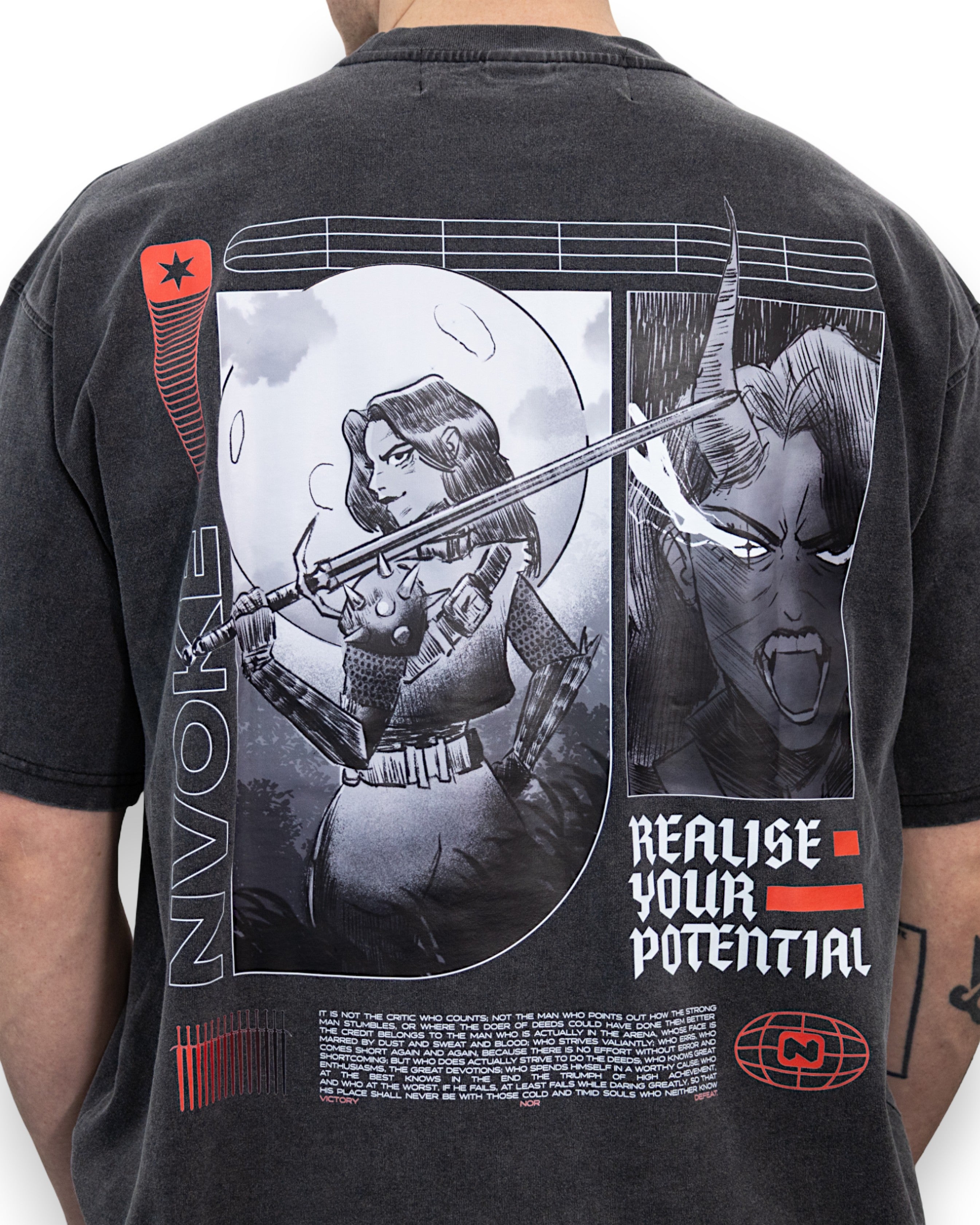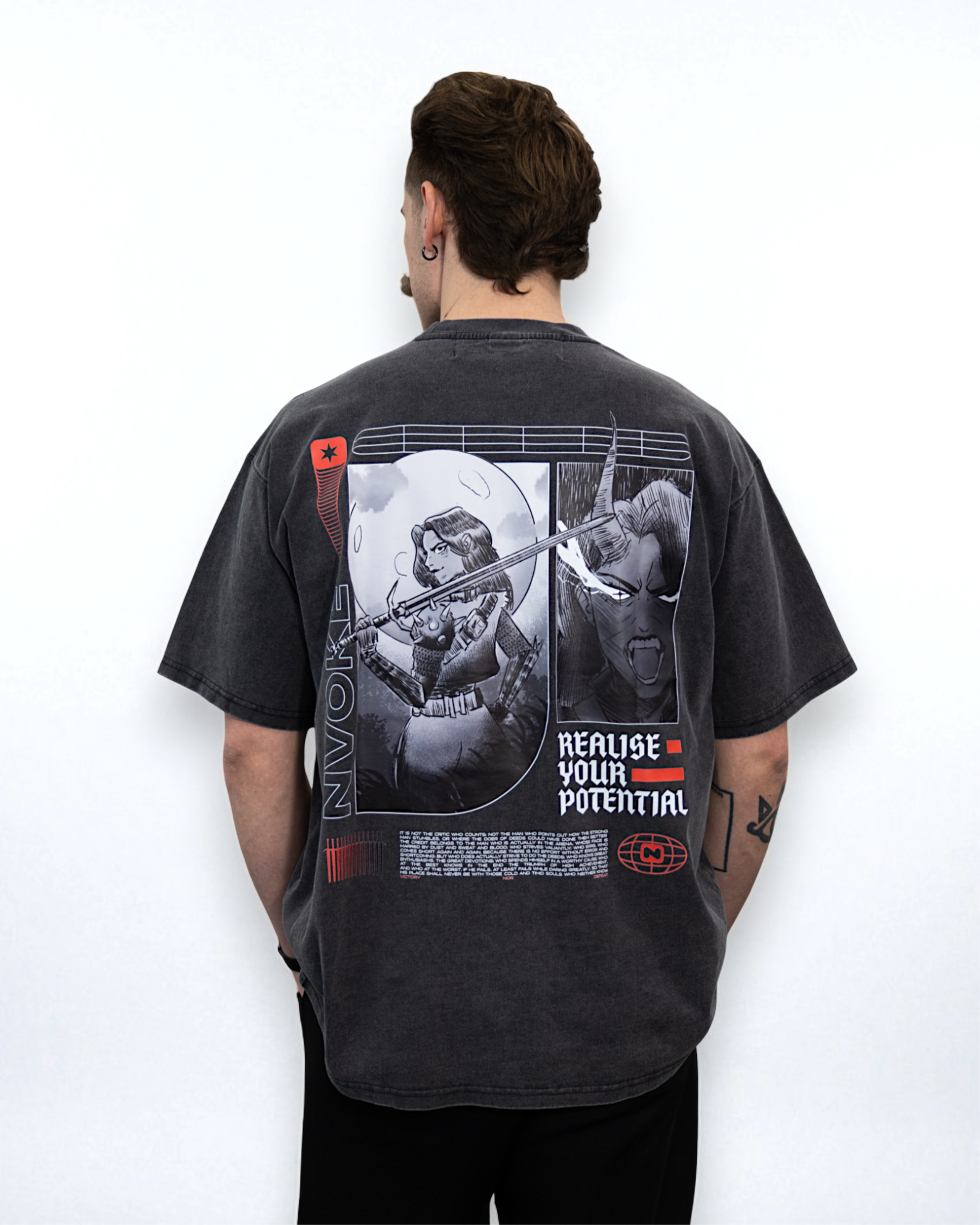 NVOKE's oversized tee fitted with a thicker collar, drop shoulder sleeves and a wide boxy fit.