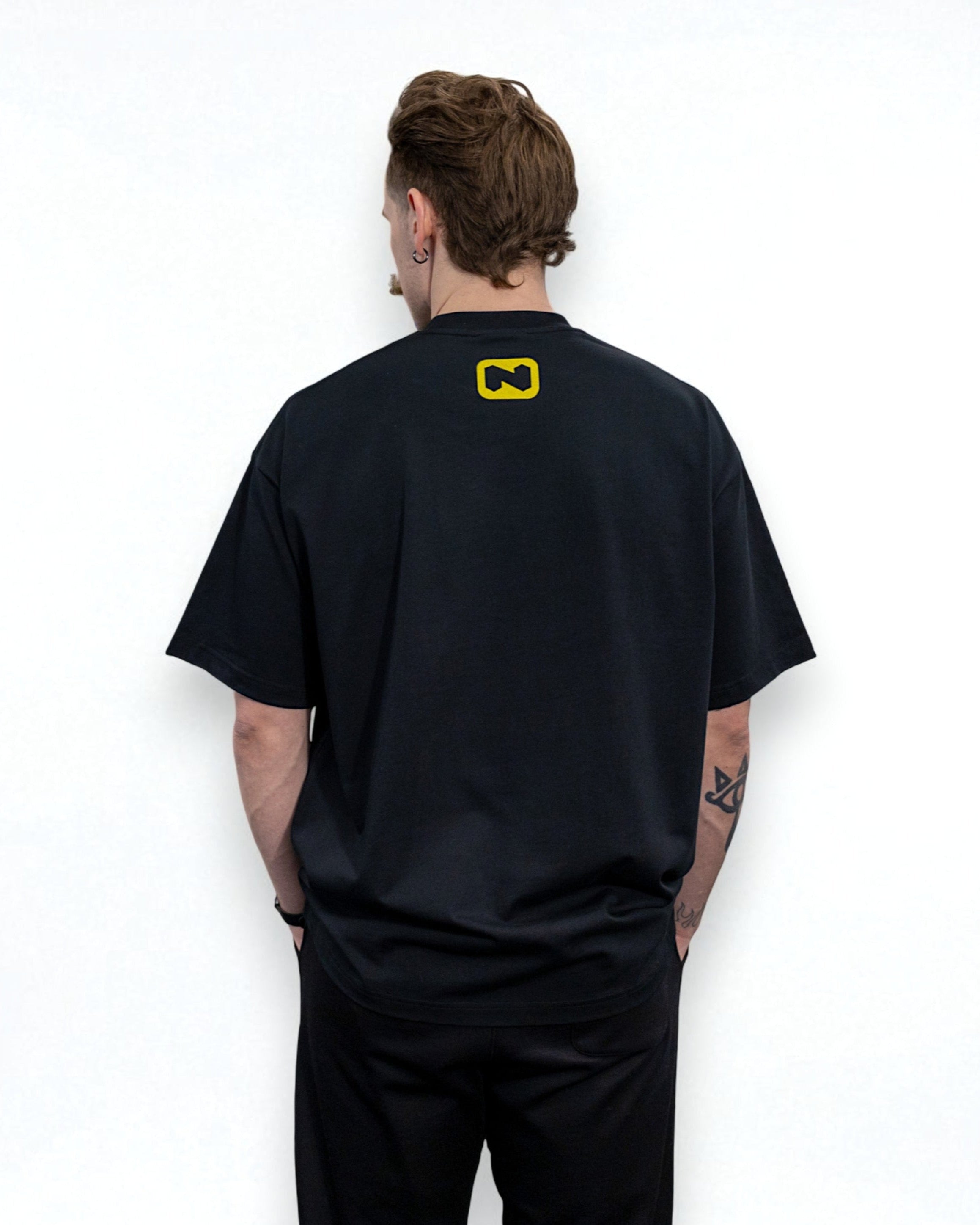 NVOKE's oversized tee fitted with a thicker collar, drop shoulder sleeves and a wide boxy fit.